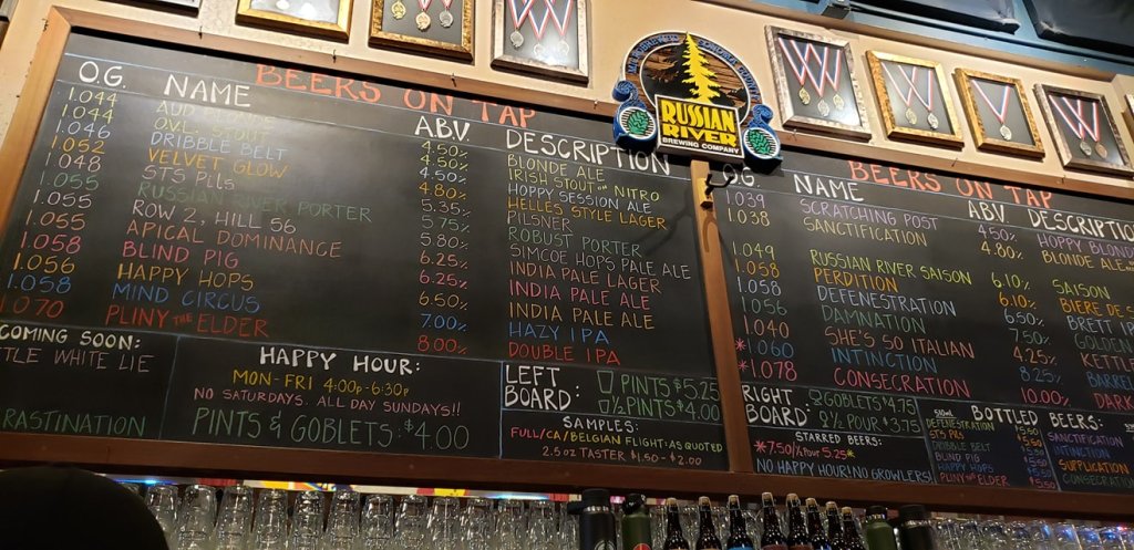 Santa Rosa is also home to a world renown brewery called Russian River Brewery, named after the area close by where there are also lots of vineyards. So, we definitely had to check out that scene!