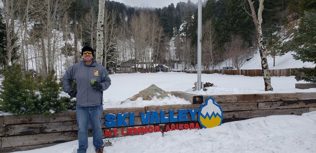 Eventually the weather turned sunny and pleasant so we did the road again, found a little rock scrambling photo spot, ate our packed in lunch and headed toward Mt. Lemmon. It was quite the drive up there, but not my first mountain drive! Mt. Lemmon came highly recommended. It does seem like the summit would be really cool! There are restaurants, trails, skiing opportunities, etc. Unfortunately, we came on a Tuesday and almost every single thing is closed on Tuesday. And due to recent snowfall, no trails were accessible. The little general store in the town up there was open, but very limited in what they offer. Unfortunately the trip up was more a go up, look around, throw snowballs at each other, and come back down situation. However, it was interesting being in the sun and desert with 70 degree-ish temps at one hour, then being sub 30 in blowing snow the next, only to be back to the desert life the following hour.