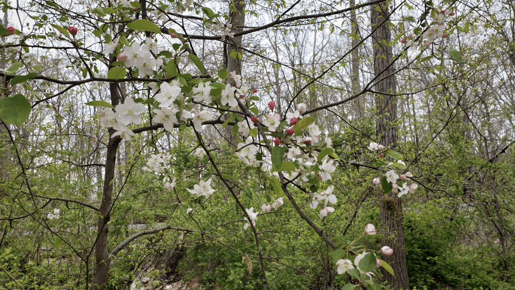 The last hike I did in the park was The Furnace Run, a moderate 2 mile loop. The parking area for this one was extremely packed and I had to park off road. There is a very close by covered bridge and it is a big draw. The hike can either end or start at the bridge. I started it there and headed on my way. The start of this trail as I did it, had a pretty serious incline right away as well before leveling off. The reason I chose this trail was for the chance to see some color and there were more wildflowers and blooming trees along this trail than I came across on the others! The trail itself is easy to follow, but there are a few side trail options and connections to other trails that are not quite so well marked and it could be easy to get onto one of them without intending to do so.