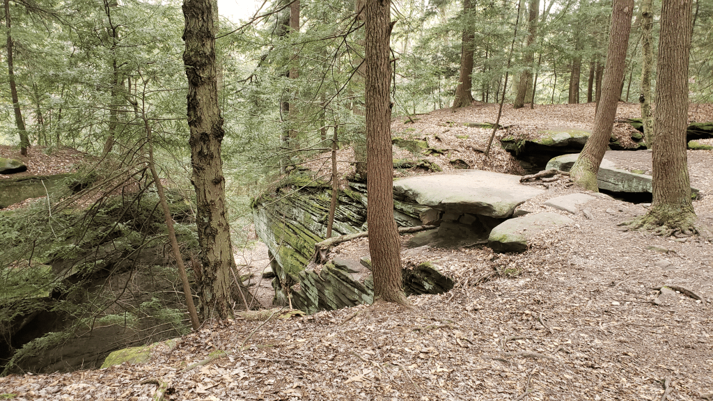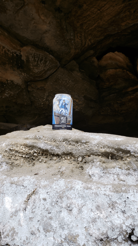 Anyway, I didn’t come here to sit and watch a train, so I got on my way and did my first hike! The trail is called the Ledges. The trail itself is super well marked, about 2.5 miles and is fairly easy going, but you will need non slip shoes for sure! Again, it is a loop, but the convenient part is the loop encompassess the parking area so there are plenty of side trails to take you back to the car if needed. As the name indicates there are many ledges! Most of the good stuff is right at the beginning of the hike as well, or can be right at the end, however you want to do it! There is a cave and all kind of little nooks and crannies you or a little one can get into! I found a good little spot to stop for a tasty local brew from the Great Lakes Brewery, a delicious IPA called Commodore Perry! The back end of the trail allowed for some very small wildflowers and a pretty decent overlook over the valley!