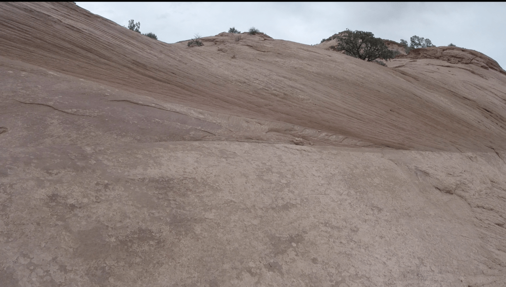My last stop in the park was a…half fulfilling… hike called Aztec Butte. The hike wasn’t really long, but a part of it seemed very sketchy so I only did part of it. The hike starts easy enough, a sandy walk around a smalle butte. About 3 tenths or so in there is a split to actually ascend that butte. On top are some nice views of the area. There is also a spot where you can get down on some ledges on the side of the butte and access some old Puebloan granaries, they are original, and they are small…but neat nonetheless and several hundreds of years old. They are very well hidden on purpose, even from local wildlife. The next part of the trail, however, seemed like a much bigger payoff but it seemed a bit perilous to me. This part also made an ascent up a butte, but this one was much bigger. There was no path per se, just cairn markers up the side on the very steep “slick rock”. (Slick rock will be mentioned more in the Arches entry – but it’s essentially very smooth sandstone, pretty steep, but provides good grip, unless it’s wet). To be honest, I gave it a fair shake! Here were my issues. Number 1, it had become quite windy. Number 2, it has become very cloudy and the clouds looked rainy. Number 3, I was literally the only person there as it was quite land in the day now. Those three factors together spelled the end of the hike. Supposedly I missed some ruins on the top and some more intact type of structures on the cliffs edge, which I read are quite treacherous to get to anyway. So that concluded my Canyonlands experience!