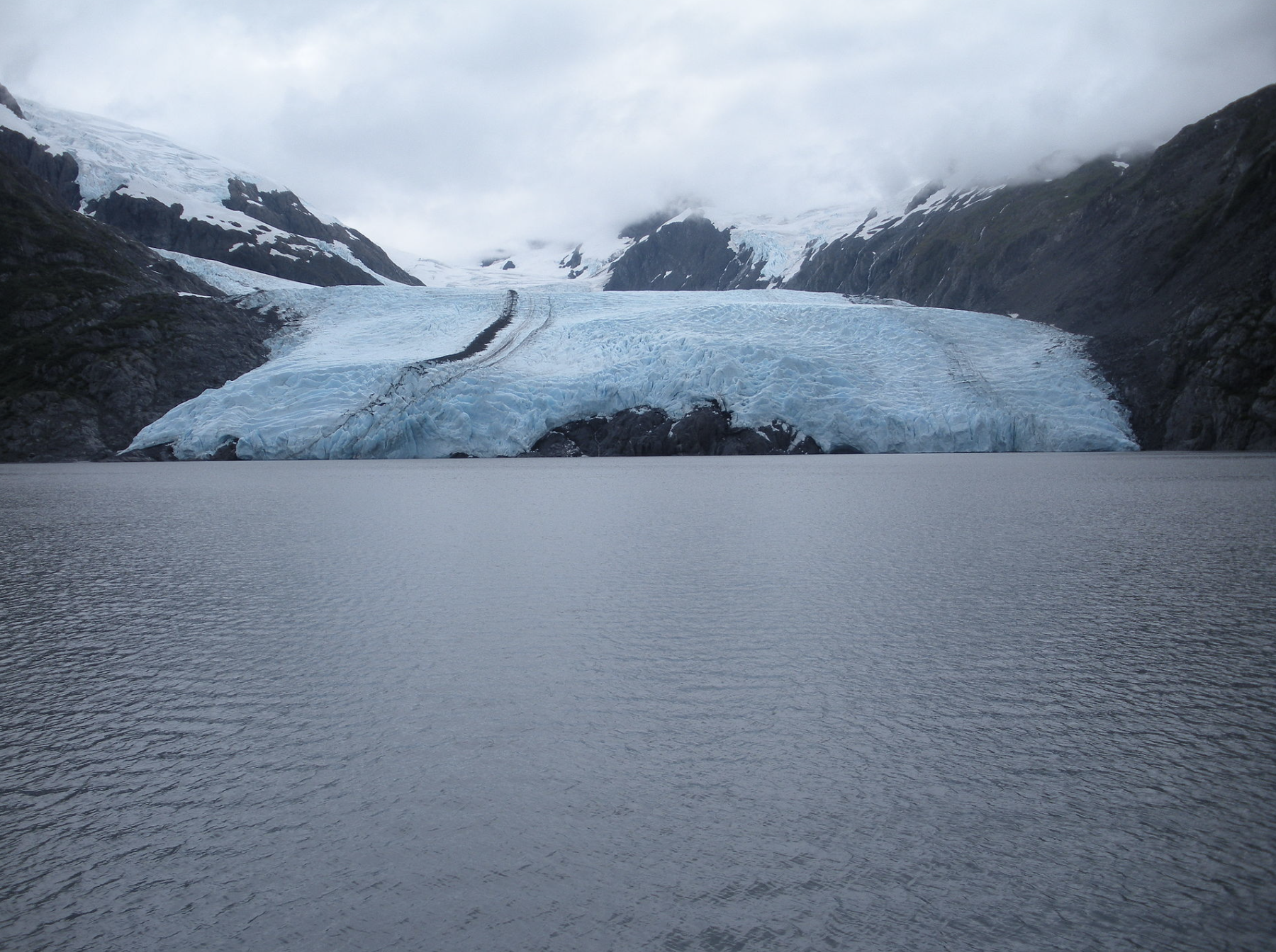 Just past the center is the split in the road that goes off to Portage Lake and Whittier instead of into the Kenai Peninsula. Portage Lake is stunning. It is easily visible from the main road, but there is an offshoot road that goes into a parking area for a lake cruise landing. I did not do that cruise, but I did walk in that area to take in the views of the lake! Near this spot is Byron Glacier. There is a relatively simple and flat hike that follows a creek into a valley where you can see what remains of the glacier that carved this section. Again, despite the extreme warmth of the air, the last bit of this hike was covered in a few feet of snow. I went out as far as I was comfortable, which was not nearly as far as the people out there before me who actually crossed the big creek via snow bridge (at 75 degrees mind you)…but I have some (I think) sense, so I hung back and took in my views from a safe distance. Portage Lake itself is a glacial lake that was not even visible until 100 years ago!