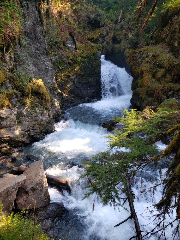 I began the beautiful drive back to Anchorage. I did make another stop in Girdwood for beer, and to repeat a hike from 2017! In 2017 I found a cool waterfall in Girdwood. The hike is pretty steep but not long and has quick and awesome payoffs! This is rainforest land here and the difference in temperature from next to the creek versus only 10 feet away is nuts! Anyway, I highly recommend if you are in Girdwood!