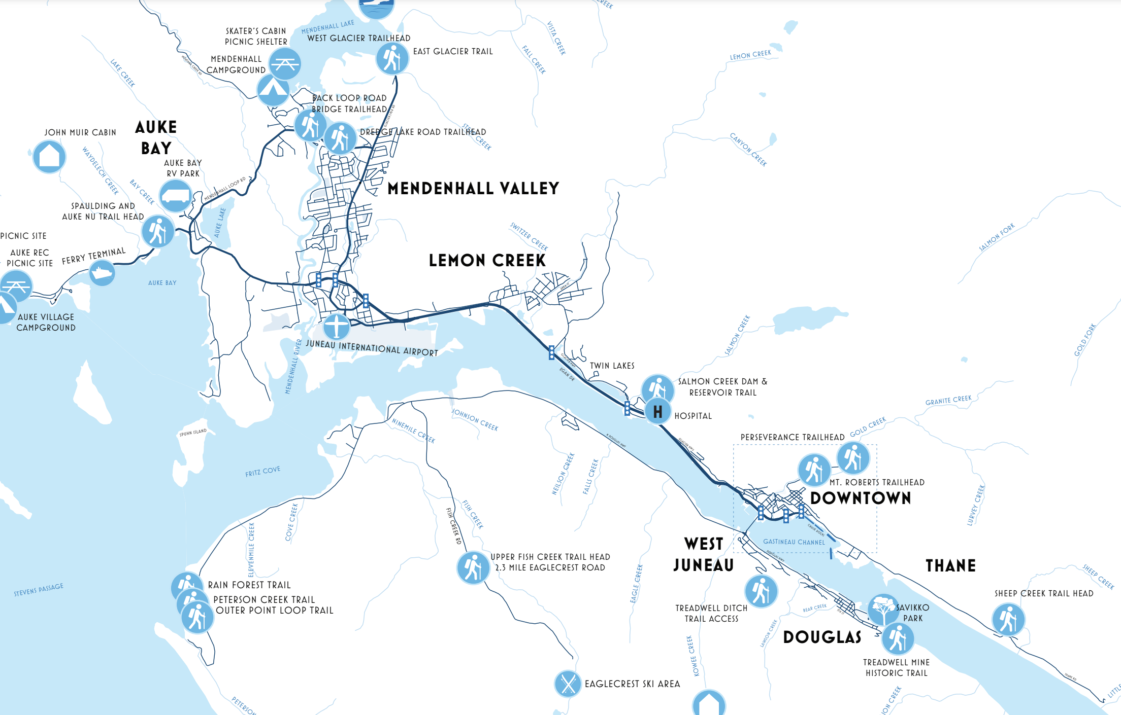 Before I get into the entry, I will give a quick geography lesson of the area! Southeast Alaska, which is predominantly mountainous rainforest, is cut off from the rest of Alaska, and mostly even from neighboring Canada. Many people visit Juneau as one stop on a cruise that visits several towns in what is called the Inner Passage. Despite being Alaska’s capital city, it is only accessible by plane or one of those cruise ships. Juneau sits to the east of a channel of water called the Gastineau Channel. Downtown is the touristy area where the cruise ships dock. The main road travels north a few miles to the “midtown” area, then continues further north through the Mendenhall Valley, where the airport and University of Alaska Southeast is located, as well as the namesake Mendenhall Glacier. The road continues north quite a ways into the sparse surroundings before ending. The road also continues south of downtown for a little bit as well. From downtown there is a bridge across the channel to Douglas Island. Douglas Island is a mountain that is mostly just the road from the smaller town of Douglas that wraps about halfway around the northern part of the island passing homes along the road and a ski resort at the top. If you care to travel elsewhere you need boat or plane access!