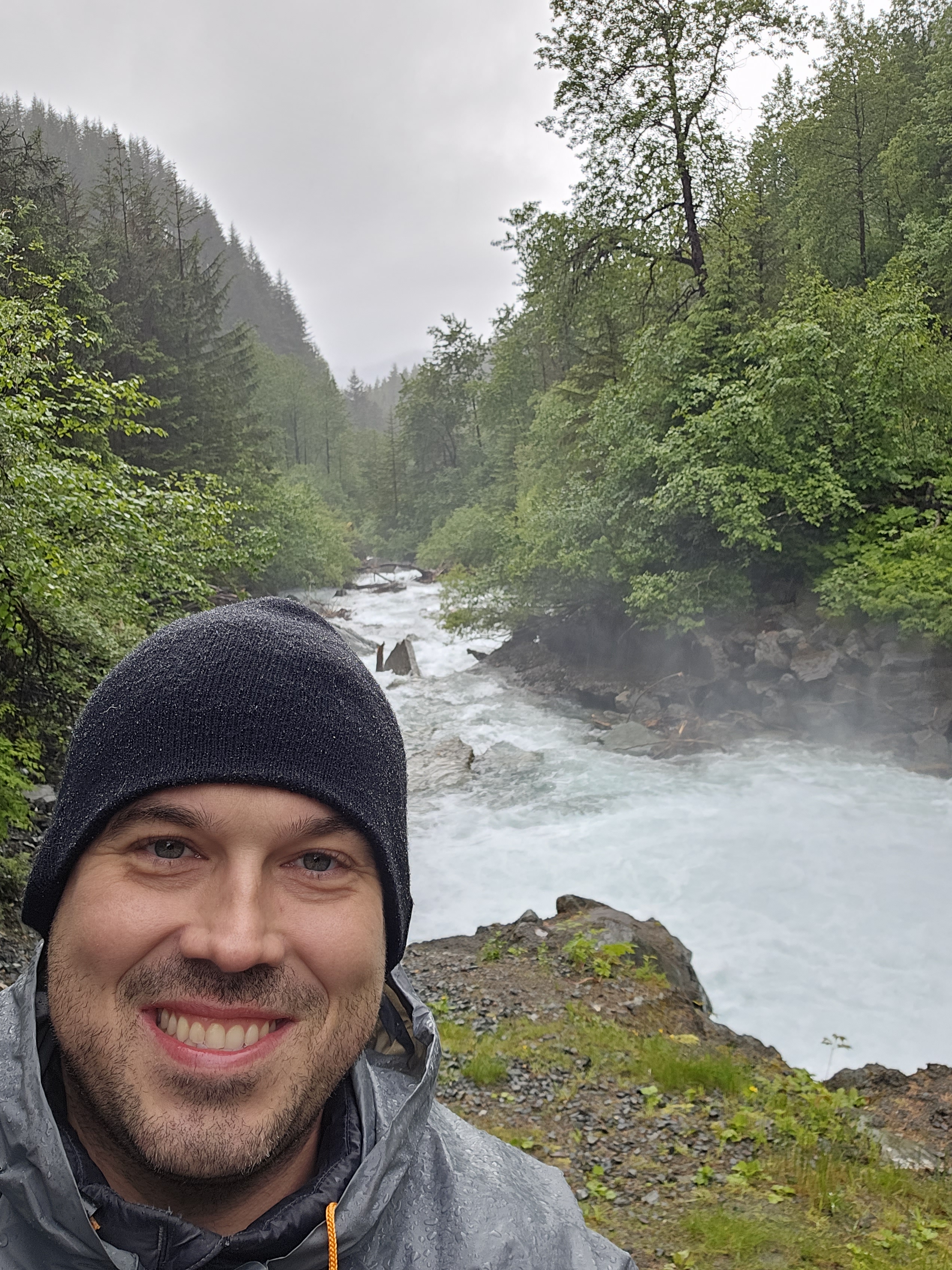 While Thursday was a litle suspect, weather-wise, Friday was a good old fashioned southeast Alaska day: heavy rain and 50 degrees. This was also the day that I had initially intended to check out Glacier Bay National Park. Thankfully during the layover on the way up, I was able to get everything rebooked for a Sunday visit! So, instead we did rainy day things! After a nice breakfast at The Rookery Cafe, not too early, we headed to another brewery nearby in downtown called Devil’s Club Brewing Company. They have some damn fine beers as well, check it out for sure! As you can imagine, with all the mountains around there are many trails to explore. Even with the rain, we did a simple, not terribly long, yet pretty hike called the Gold Creek Flume Trail. This trail is accessed pretty much from the downtown area and follows an old creek that I bet used to be a gold panning creek (big brain!?). The trail itself looks to have been an old transport rail and is generally flat and very easy. After the hike and a revisit to the Hangar, we drove back to Douglas Island and drove the road north a bit. We explored a bit of the ski resort area, closed for the season, of course, and found a cool waterfall near the end of the road!