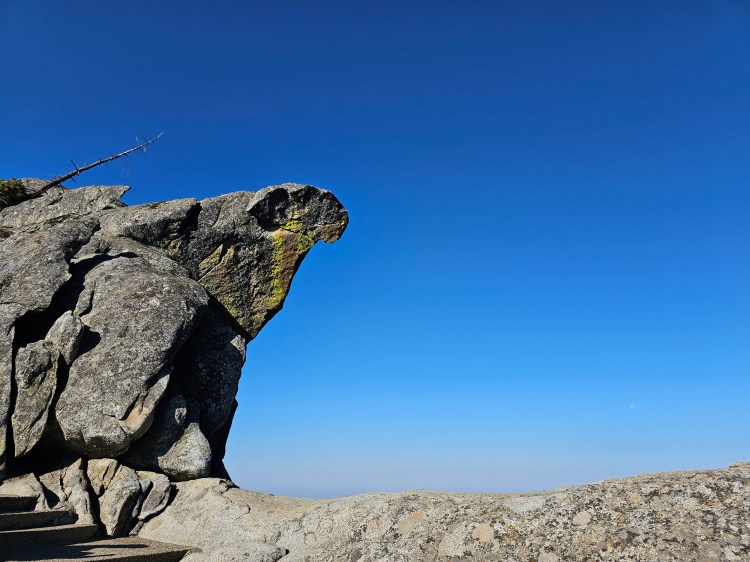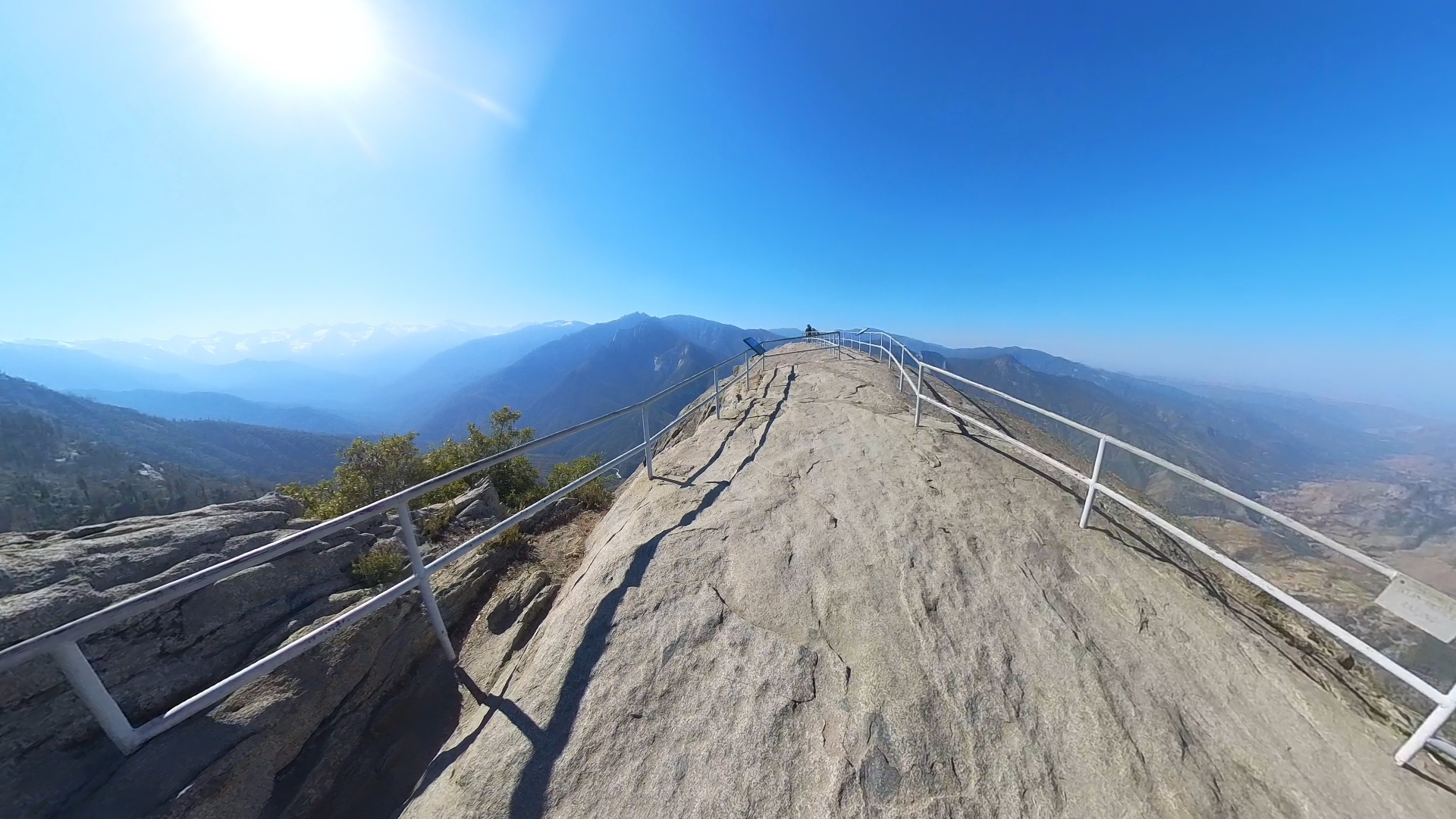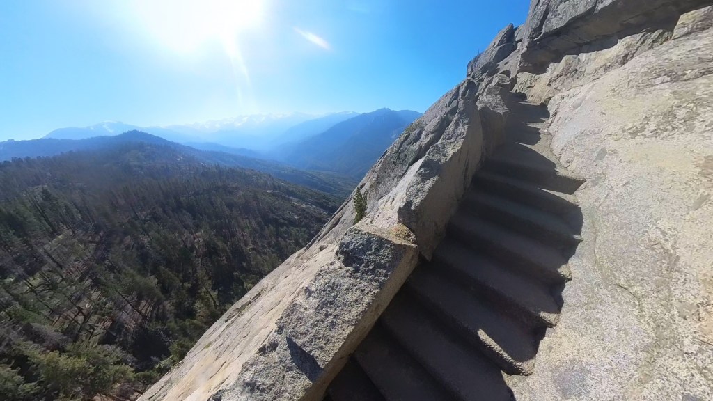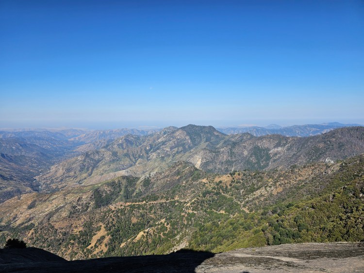 The next day we started out our morning exploring Moro Rock, one of the big draws in Seki. This is a huge rock formation that sits at a pretty high spot in the park. There is a small parking lot right at the start of the climb but you better get there early for a spot! The climb up is about 350 steps with about a 275 feet gain and the top of the rock sits at about 6725′ elevation. This is well above the surrounding landscape, giving beautiful views of the nearby sequoia groves, the valleys below, and the Great Western Divide. This is a pretty cool spot to take in some great views and some fresh air!