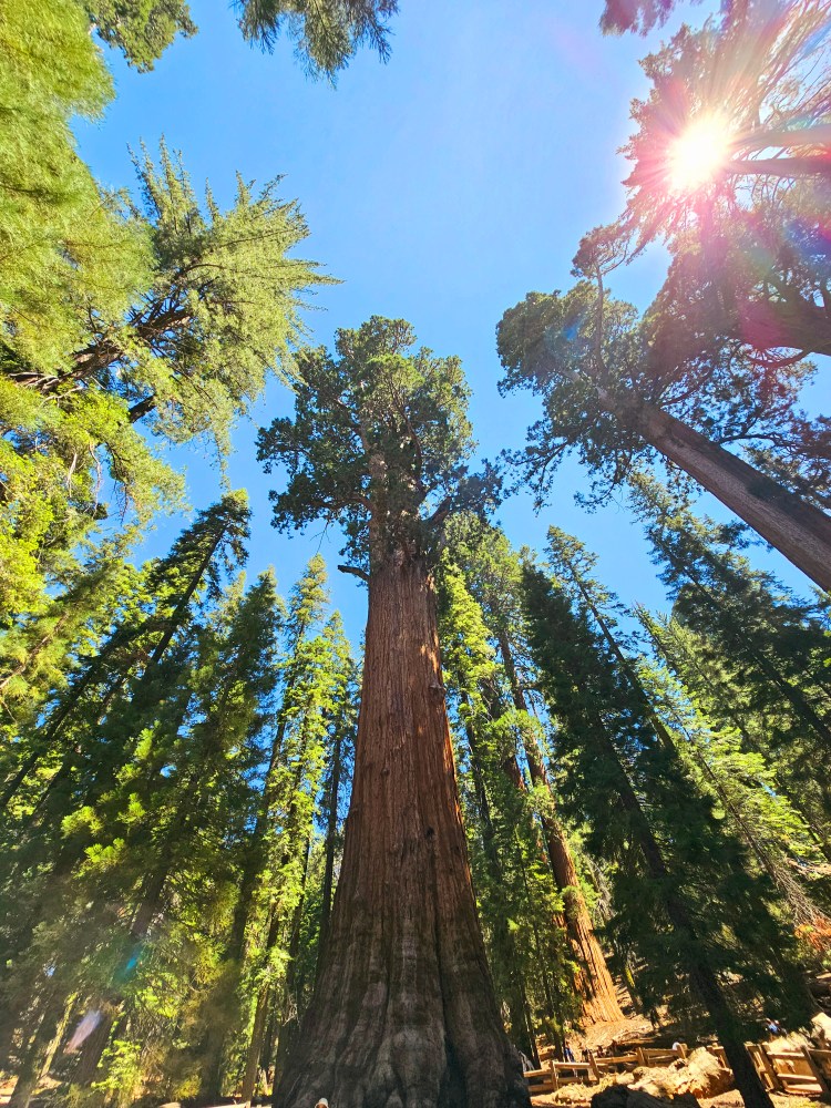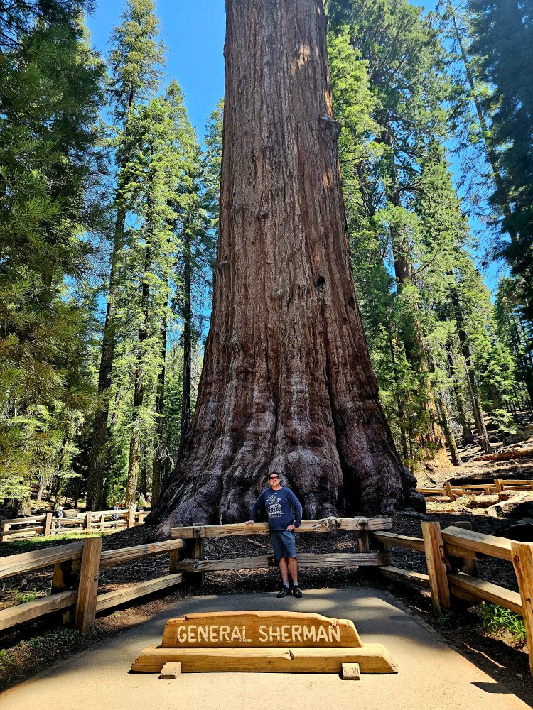 Thankfully, the night at Gena’s passed relatively event free once the room cooled off. The next morning was up and at ’em, heading into Kings Canyon. Seki sits firmly inside Sequoia National Forest, so Kings Canyon has its share of sequoias as well! In fact, one of the big attractions in the park, at least the part that is open right now, is the General Grant tree. It’s really hard to describe how huge these trees are. Pictures cannot do justice to the size of the giant sequoia; and the other trees in the forest are quite large as well. The sequoias are also very old! The lifespan of a sequoia can be 3 millenia! Sequoias are not the tallest trees, nor are they the widest, and they are also not the oldest either. That being said they are the most massive tree, and potentially, most massive living organism, on the planet, by volume. To add the trees feel weird. They are kinda spongey, I guess would be the best word to describe it. These trees coexist with wildfires and the nature of their bark does a great job of protecting them. That being said, there have been a lot of intense wildfires in just the last decade which have taken their tolld on the trees. Anyway, the stats on General Grant are impressive! It is about 1600 years old, 107 feet in circumference at the base (!!) and 267 feet tall! At a volume of 46,600 cubic feet it is the second largest tree in the world and is about 1500 years old! The top of the tree is apparently no longer growing, but it still adds about an entire tree’s worth of wood every year. In addition, General Grant is also referred to as the Nation’s Christmas Tree.