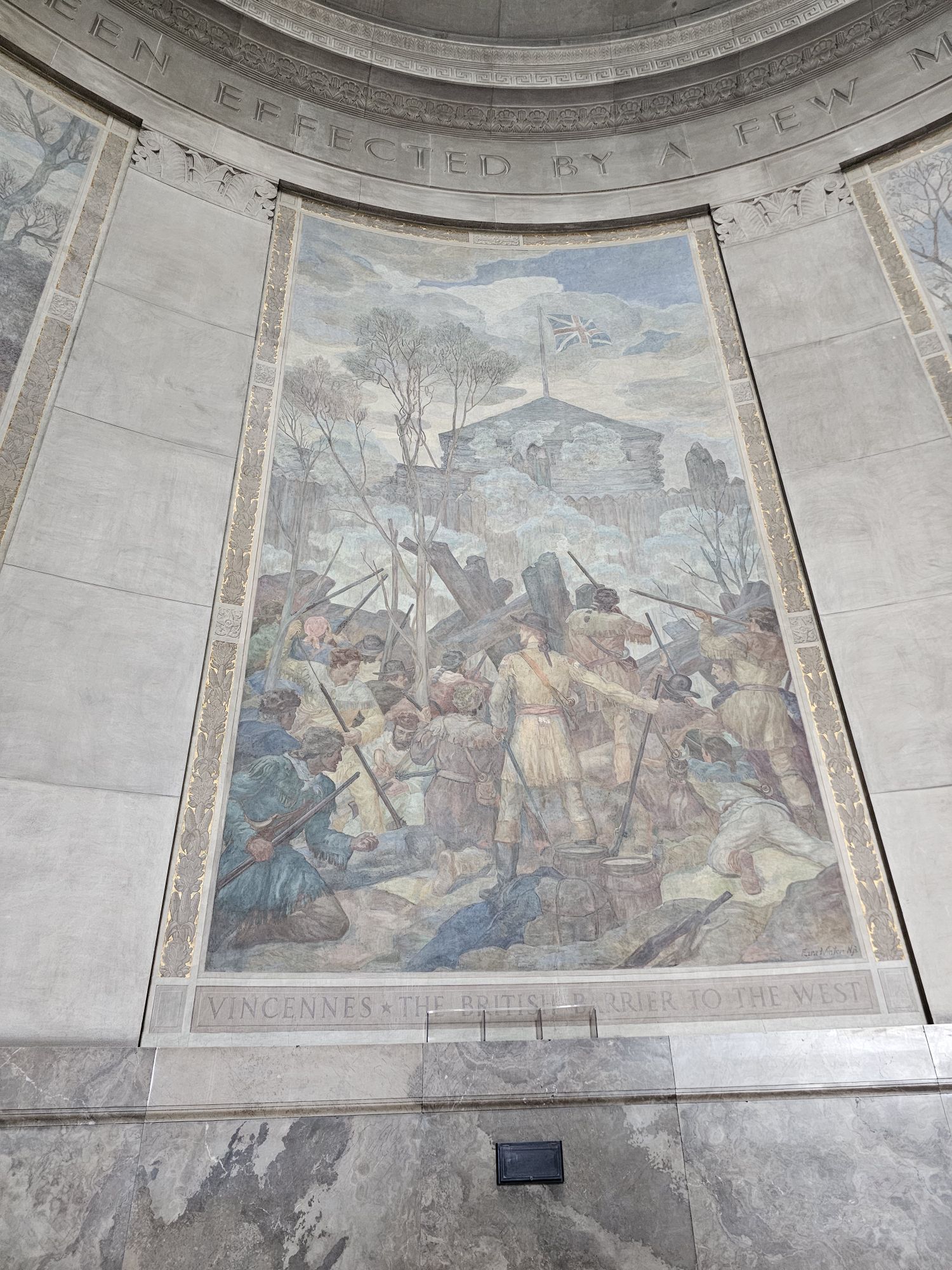 There is a lot of history here. I will give a brief account, and you can fill in the rest. This area was settled before the Revolutionary War (our native bothers and sisters, of course, where here before then). Once the war broke out G.R. Clark was in charge of the Virginia Militia in Kentucky. He was instrumental in the US forces taking Vincennes from the British during the war. This entire area was know as the Old Northwest and part of British Quebec. This weakened the British positions and they ceded all the land to the US in the Treaty of Paris. Essentially, G.R. Clark was the reason we gained the land that would lead to the modern day states of Ohio, Indiana, Illinois, Michigan, Wisconsin, and parts of Minnesota.
