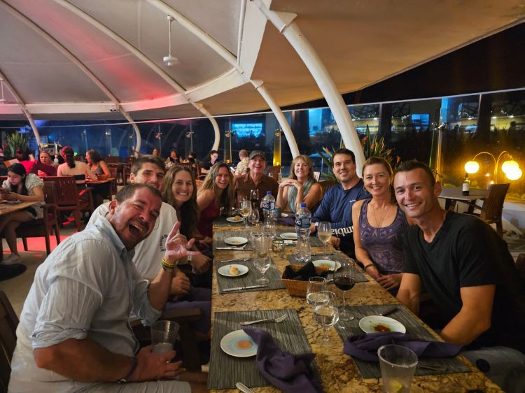 The trip was really chill and mostly hanging around the volleyball events but there were some other big highlights. Although the water was warm, it was quite rough, but I was still able to take a couple hours to go kayaking. We took a super fun afternoon/evening cruise out to my first foreign national park. That cruise was great with cool fruits, all you could drink Modelo and wine, and a return trip featuring the crew really showing out, acting like bad American rockers. It was delightful! The Parque Nacional Marino Los Orcos del Mismaloya is off the coast to the south of Puerto Vallarta. The arches in the name are the main attraction, the Mismaloya Arches. Small boats can cruise through one of the arches, but our vessel was too large, though the captain did take us in as far as possible. The big rock island is a huge bird habitat including the blue footed booby. This is one of the few places on earth you can see these birds and I did manage to snag a picture of one! It’s not great but I will include it! There was also ample opportunity to hang with professional volleyball players, including a few that I have already hung out with a few times prior to this trip, and a new Olympian. And of course, there were some volleyball shenanigans with some old friends from the previous trip!