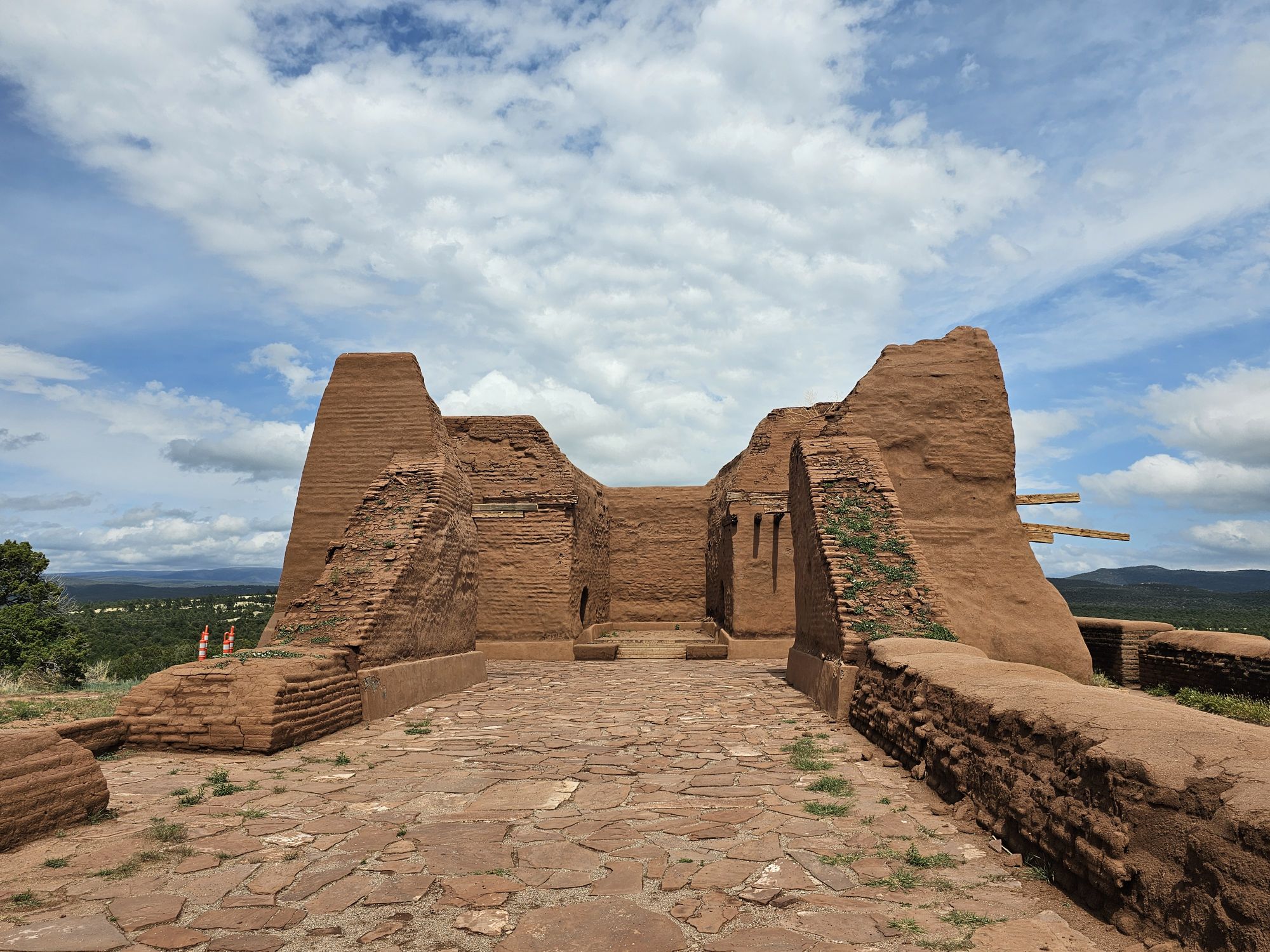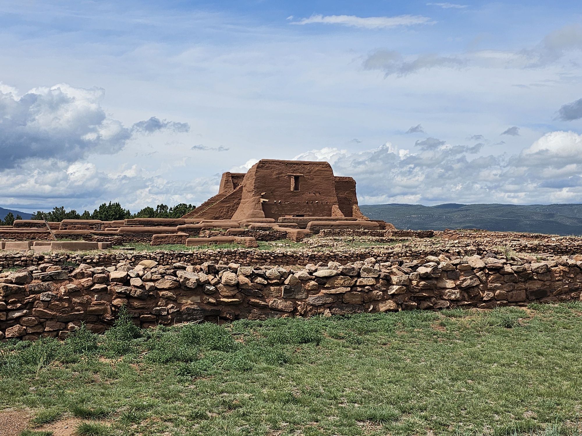 The original people in this area arrived around 1,000 years ago. They were called the P’aékish which became Pecos. As the years progressed the pueblo here grew to become a regional power, and by the time the good ole Spanish arrived in the 1500s, there were 2000 Pecos people living here. The Spanish did Spanish things: built a mission, did the whole conversions and colonialism thing, did that all over the area, and soon after came the Pueblo Revolt in 1680. In that revolt the Puebloans kicked out the Spanish and destroyed the large mission, but this was a short lived respite. The Spanish returned about a dozen years later. Interestingly, the pueblo people in the region seemed to embrace this return, and maintained friendly relations with the Spanish. By 1720 there was a new, but smaller, church built atop the old church’s foundations. This newer mission is the one that remains in a ruined state at the Pecos site, with its walls standing on top of the older church’s foundation.