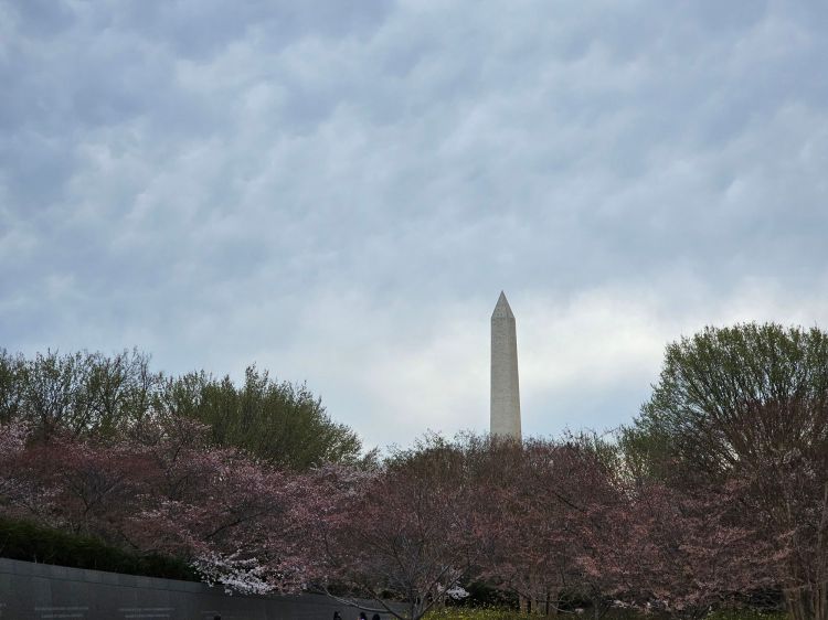 The cherry blossoms were just getting started when we were there. Jefferson monument is in the background.