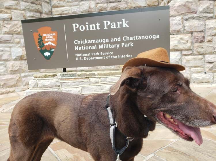 Bella’s lasting legacy will be the Bark Ranger group that the Sidekick and I started. As of this post, the group is now over five thousand members and growing fast! It was summer 2021, Bella and I were roadtripping, and I was looking for national park spots to add to my passport book. I noticed a cool looking spot called Little River Canyon National Preserve in the northeastern nook of Alabama. This was not altogether far off my path, so I made a plan for a stop there. Looking through the park’s website, I noticed in the pet section a blurb about this Bark Ranger thing! I had never heard of this and though it was a definite must do! In addition, another nearby National Monument, Russell Cave, also had a Bark Ranger program, so she got to double up! You can check out my entry on this trip here.