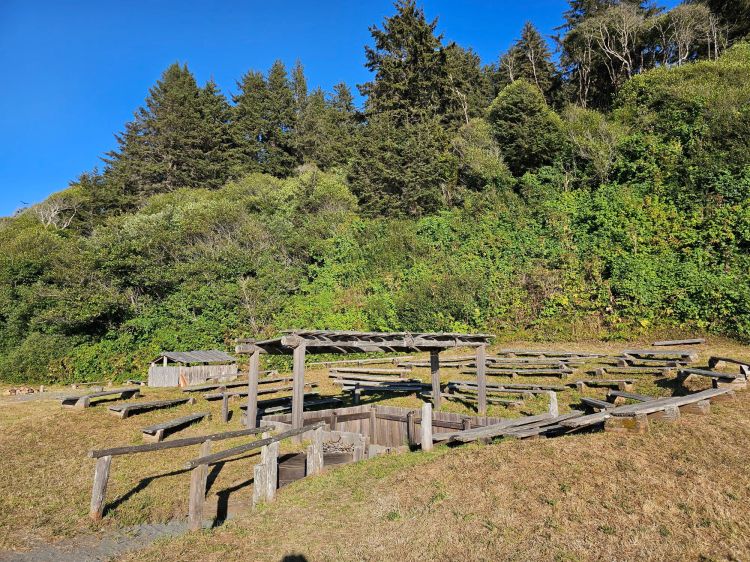 Another Yurok structure on the beach. Kinda looked like an amphitheatre with a big hole in the middle.