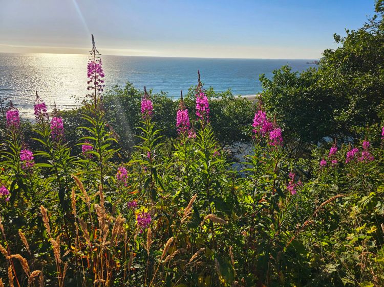 Beautiful wild flowers overlooking the Pacific near (above) Klamath Beach.