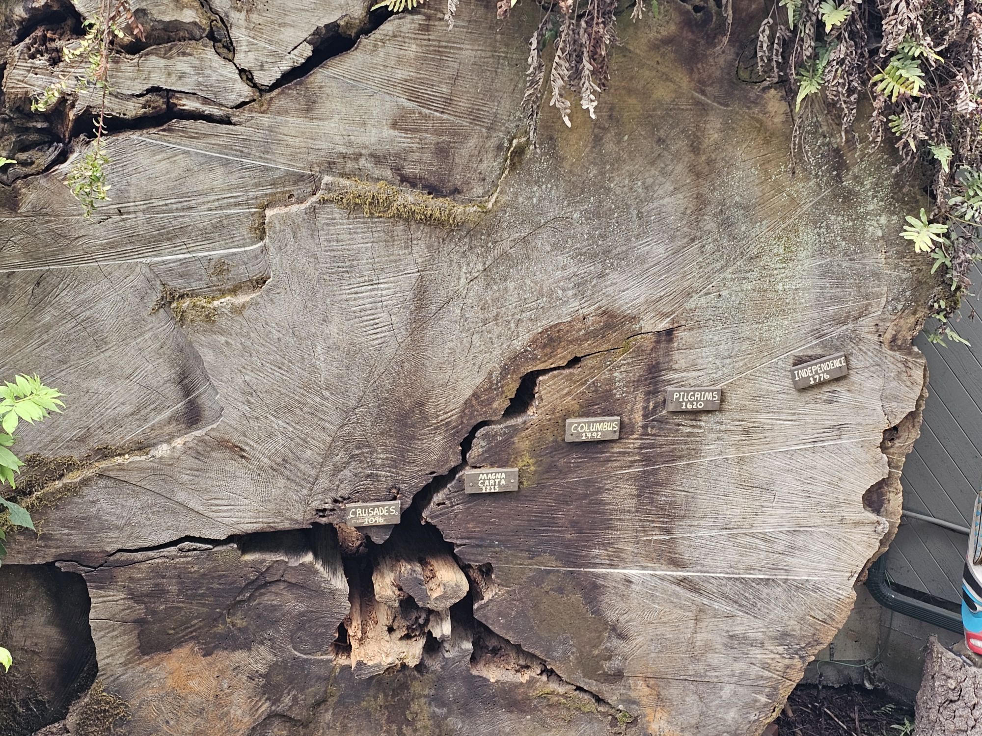 Trees of Mystery has this displayed to show some historical events in the rings of the tree.