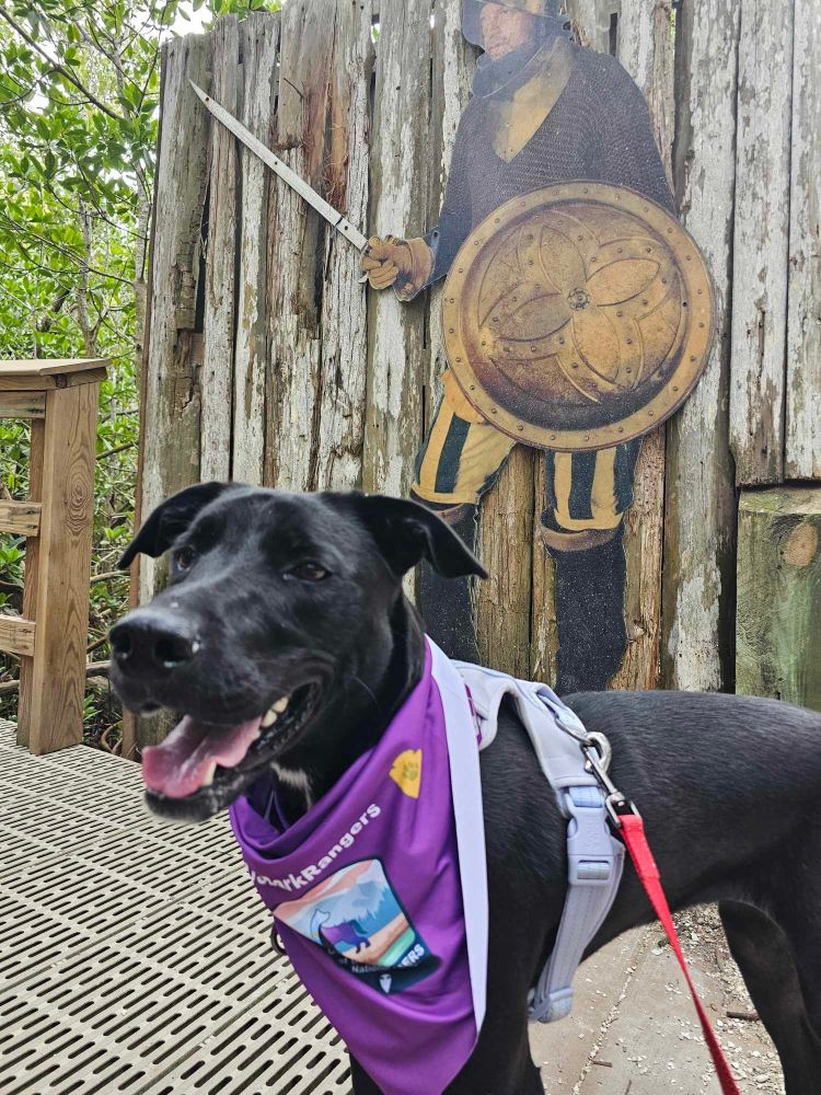 We have only had one opportunity for Bark Ranger stuff so far, so that is what I will be sharing! A couple weeks ago, Miss Maisy cut her nails in the Bark Ranger Program at De Soto National Memorial. This is the closest unit of the NPS to me, and only about 45 minutes away. This was my 3rd visit here, and somewhere in the page I already talk about the place, so I am mostly just going to post some pics of Bark Ranger Maisy! But in a nutshell this memorial marks the spot that Spanish Conquistador Hernando de Soto made landfall in the Tampa Bay Area in 1539 before pillaging his way through Florida and the Southeast. It’s a nice little park for sure and a good spot for Miss Maisy’s first adventure!