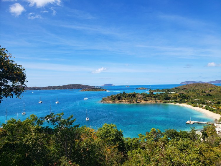 This is a view from an overlook. The foreground bay is Caneel Bay. The one in the background is Hawksnest Bay. That water is gorgeous! Taken by me.