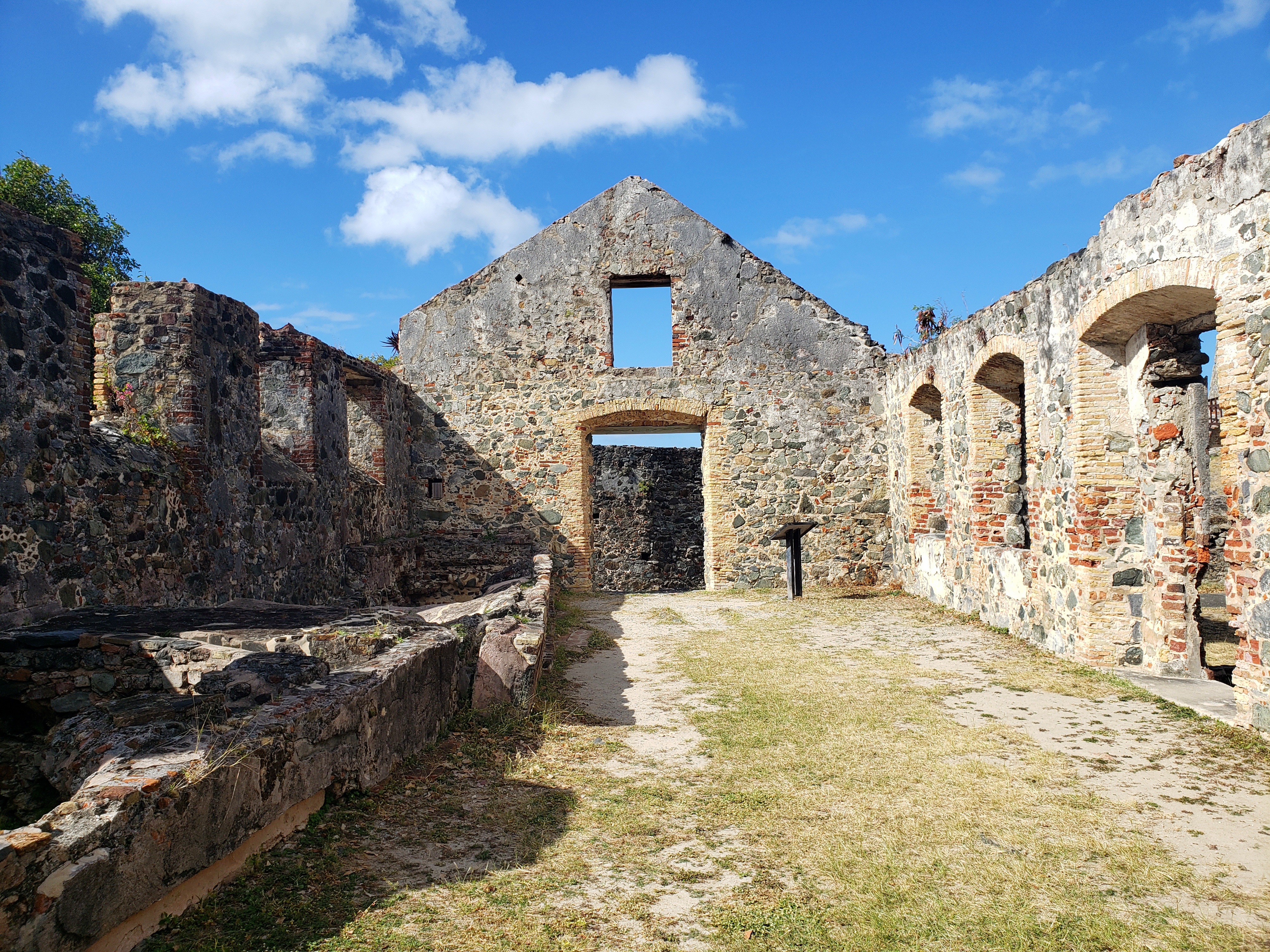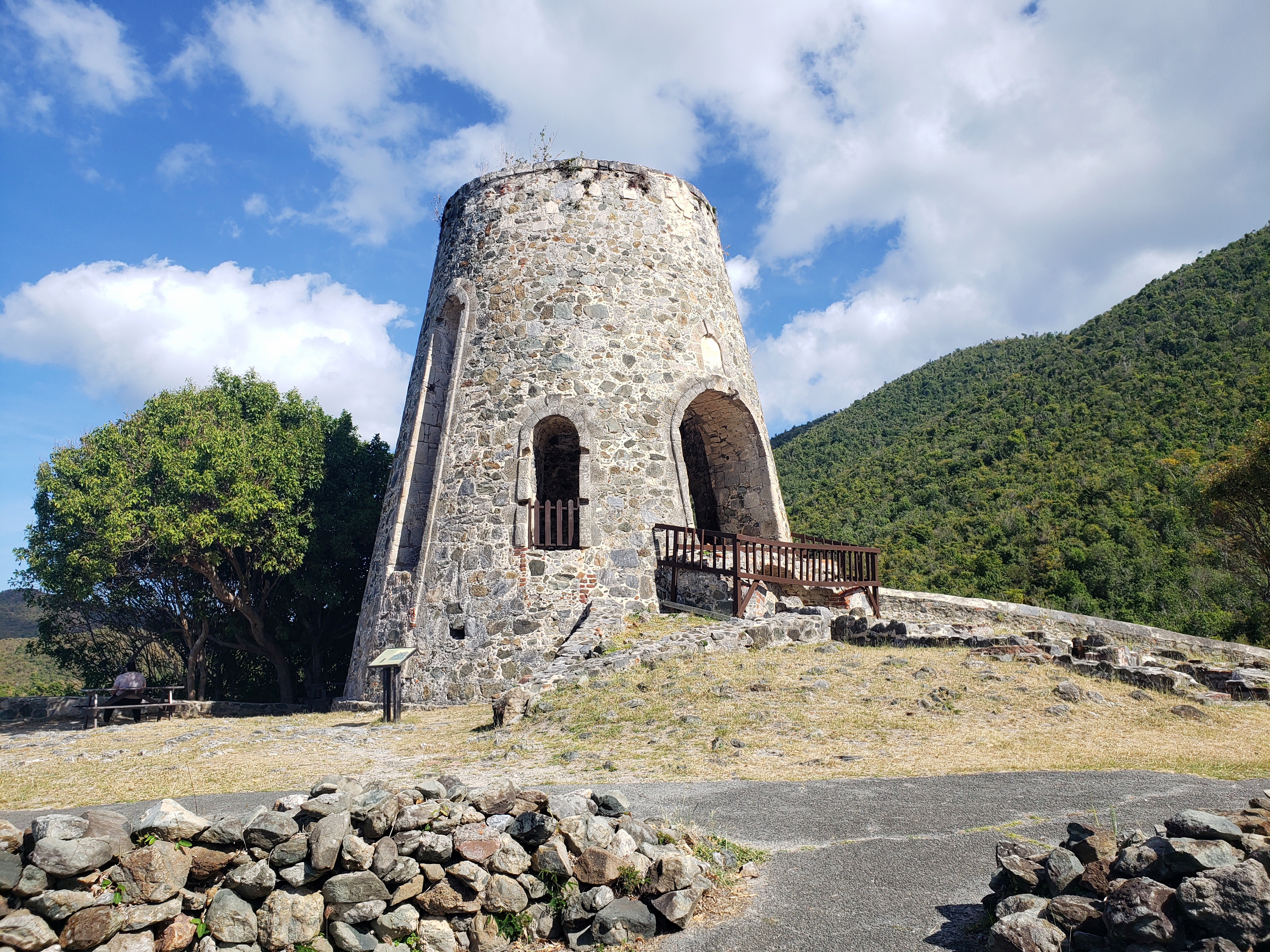 After several hours at Maho Bay, we ventured further down the road. There is quite a bit of sugar plantation history, and accompanying ruins sprinkled across the entire island. Some of them require a hefty trek through the jungle to get to, but one that is easily accessible from that northern road is called Annaberg. Approaching the ruins of Annaberg one can find some easy very shallow water access to explore for shells and coral pieces. But then going up the hill and onto some overlooking cliffs you first see a well preserved windmill and the remains of slave housing structures in varying degrees of ruin. The more industrial part of the ruins are more intact as you make your way up the hill. There is an old bakery type building and the larger boiler building. This was where the slaves would process the sugar out of the cane. Incidentally, this spot is also a great vantage point of Tortola, one of the islands of the British Virgin islands, only maybe a mile or so away.